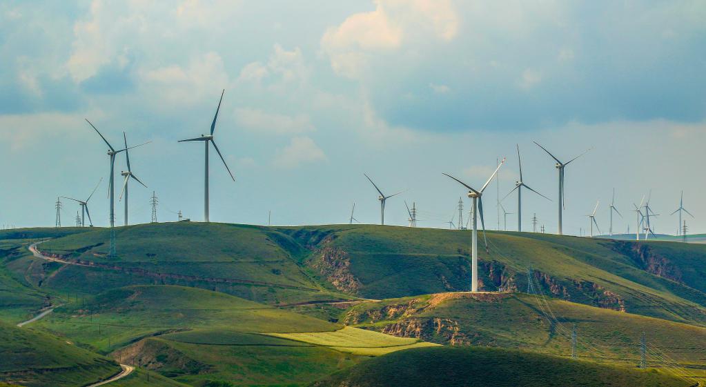连绵起伏的黄土高原上,大型风机群伴着劲风转动,蔚为壮观。绿色转型,正成为陕甘宁革命老区高质量发展新的风景线。