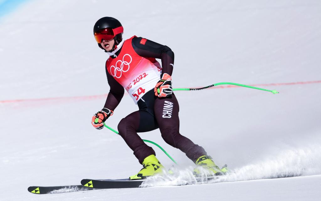 2月3日,中国选手徐铭甫在北京冬奥会高山滑雪男子滑降项目第一次训练中。新华社记者陈斌摄