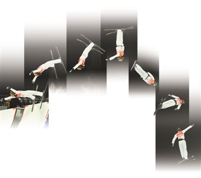 徐梦桃在自由式滑雪女子空中技巧决赛中。人民日报记者 蒋雨师摄