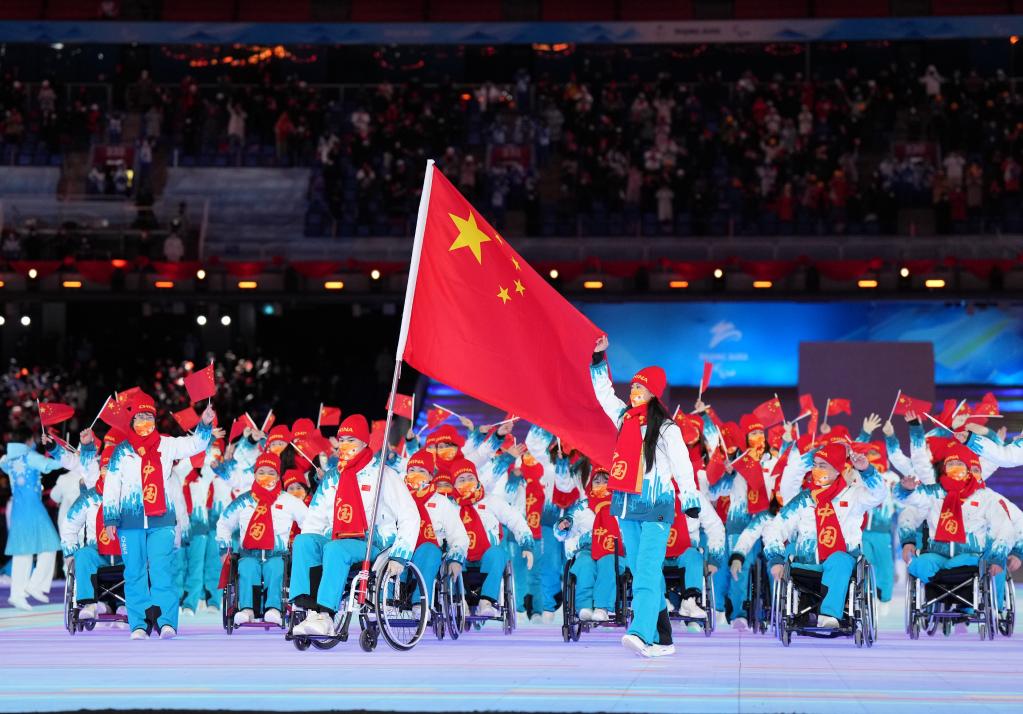 3月4日晚,中国代表团在北京2022年冬残奥会开幕式上入场。新华社记者吴壮摄