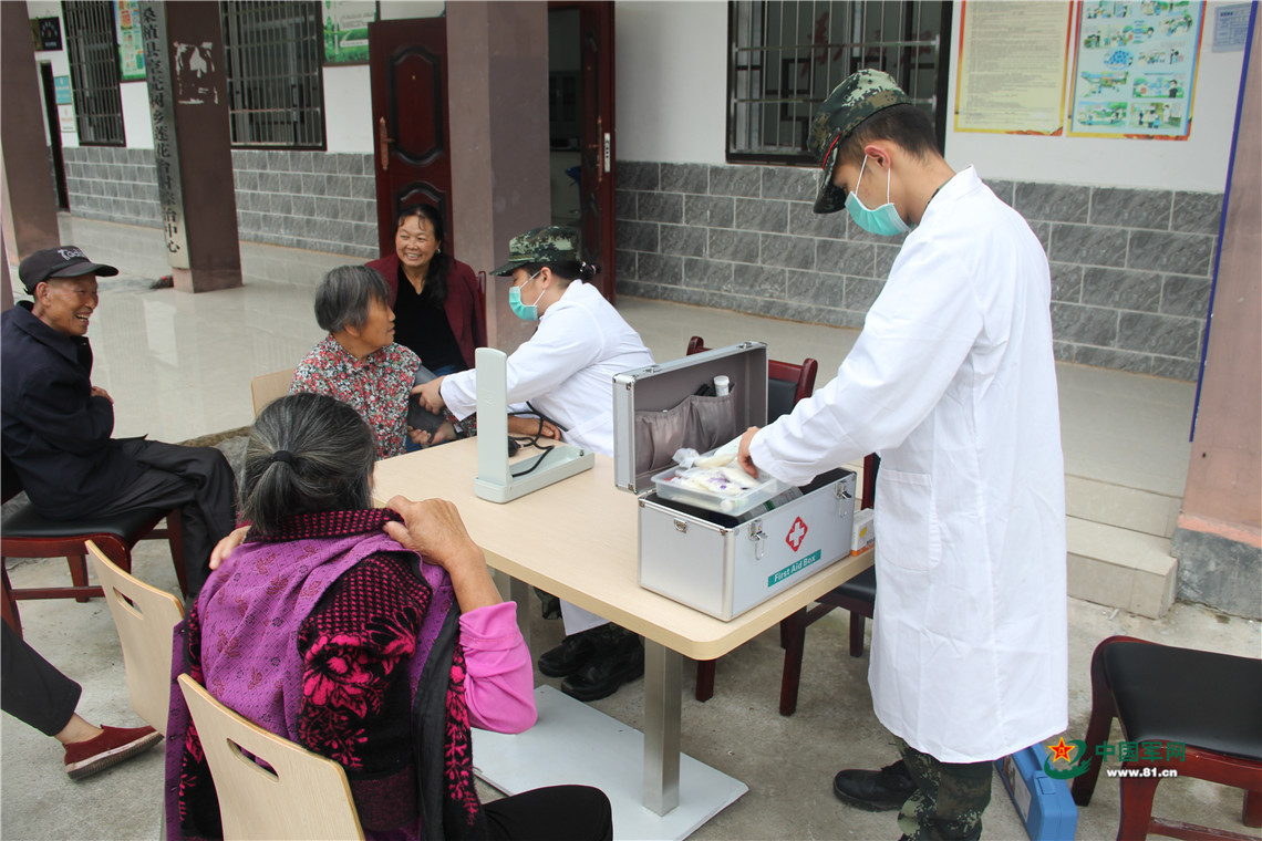 2018年10月,武警官兵在桑植县空壳树乡莲花台村开展医疗巡诊服务。