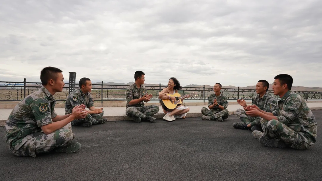为官兵们弹奏起动听的歌曲