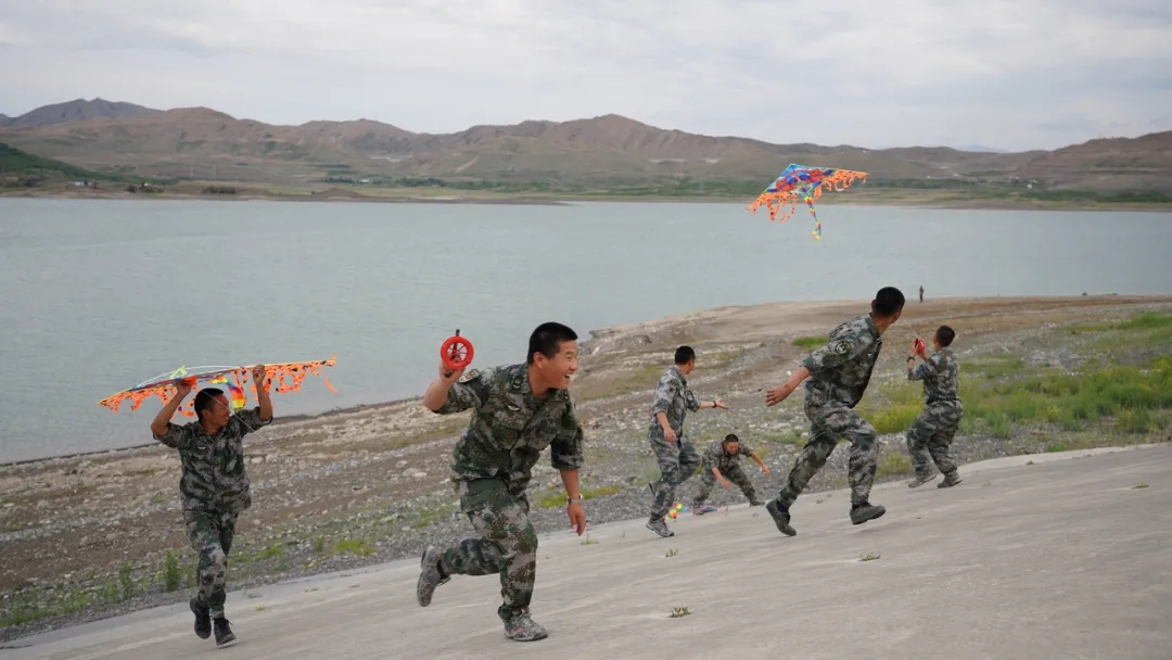 驻训场上官兵们还放起了风筝
