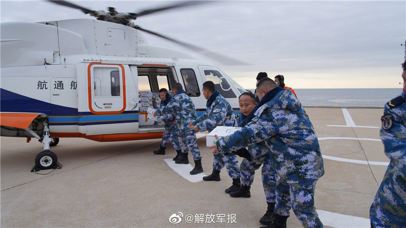 受连续强冷空气影响,辽东湾西岸觉华岛的海面结起了半米厚的冰层,海上运输线被迫中断。1月18日,军地接力,协调民用直升机飞行6架次,将鸡蛋、油菜、茄子、橘子、火龙果等1000余斤新鲜食材运送至驻岛官兵手中。(宋丽峰、于家弘、赵阿和)