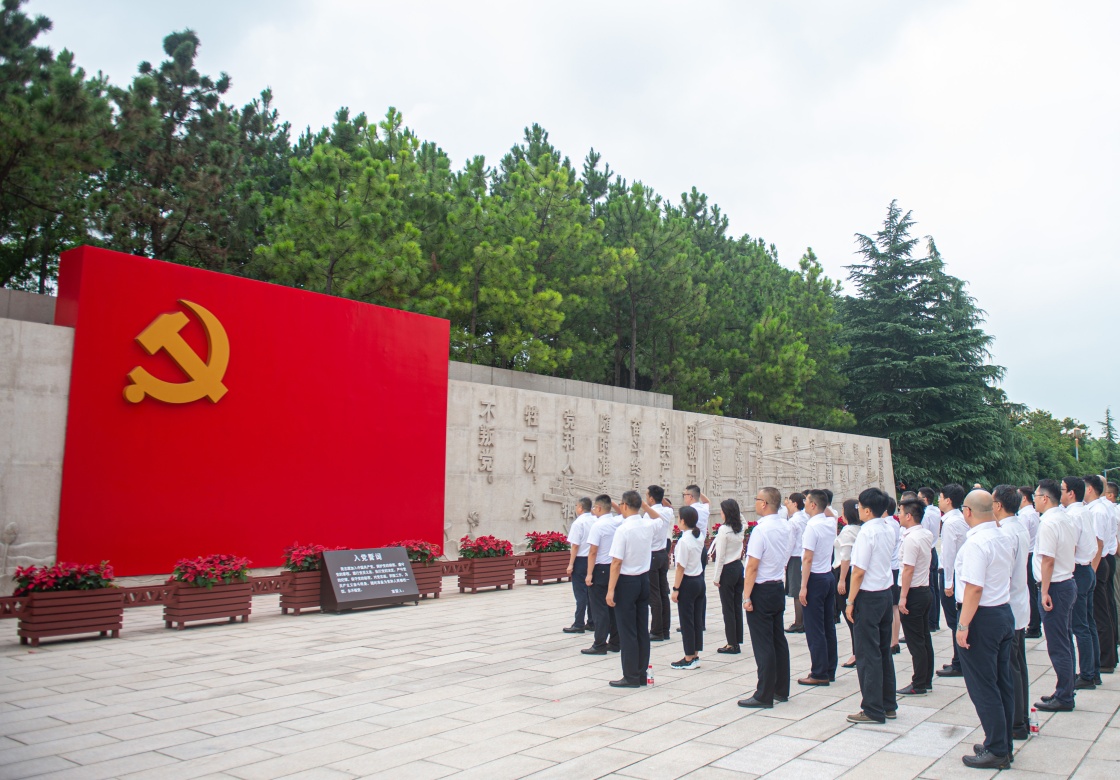 2021年6月30日,在浙江嘉兴,参观南湖革命纪念馆的党员重温入党誓词。新华社记者 江汉 摄