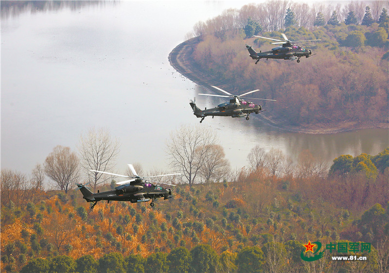 上图:第72集团军某陆航旅组织直升机超低空编队飞行训练,锤炼部队实战能力。解放军报特约通讯员 张欢朋摄