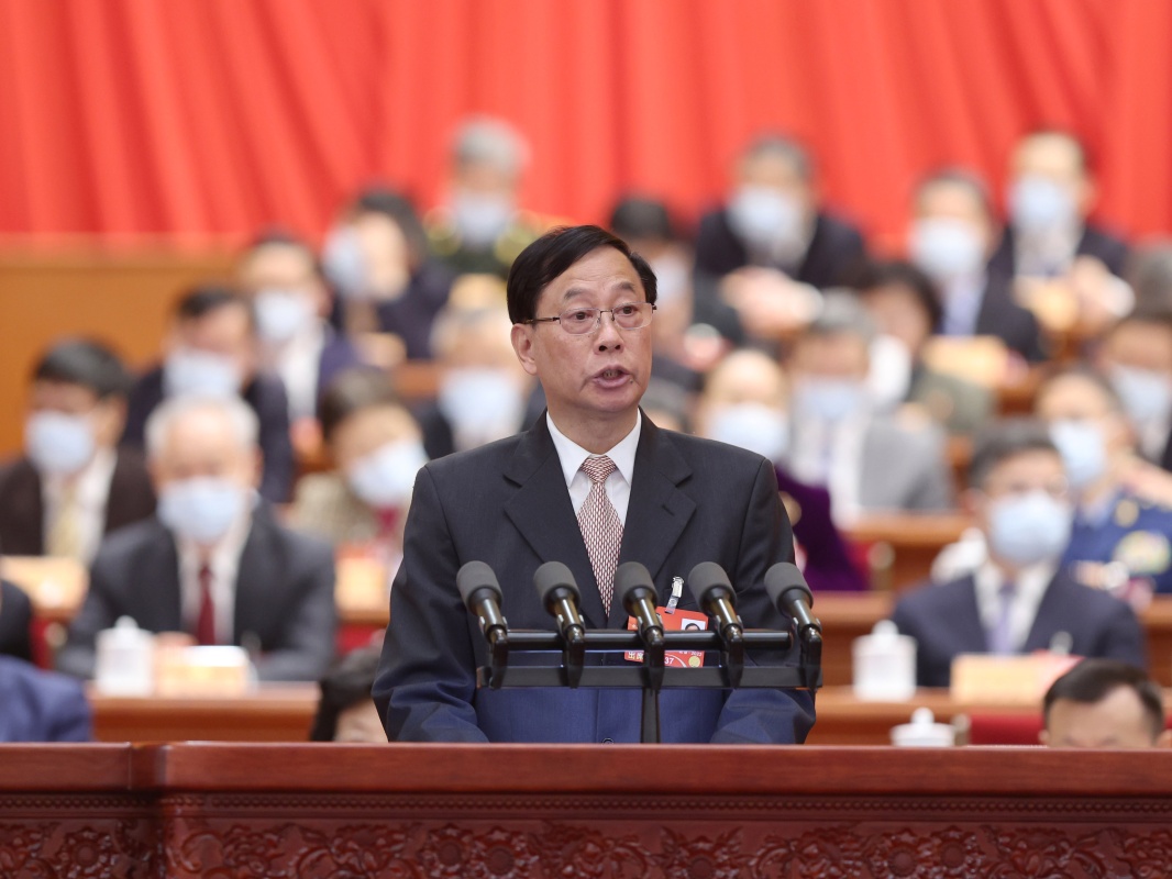 全国人大代表李永莱围绕扛牢保供电责任、为助推乡村振兴作出新贡献发言。新华社记者 李响 摄