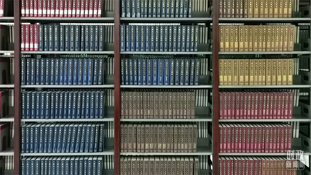 △图书馆收藏的地方志展示,目前共计5441部。(总台央视记者杨波拍摄)