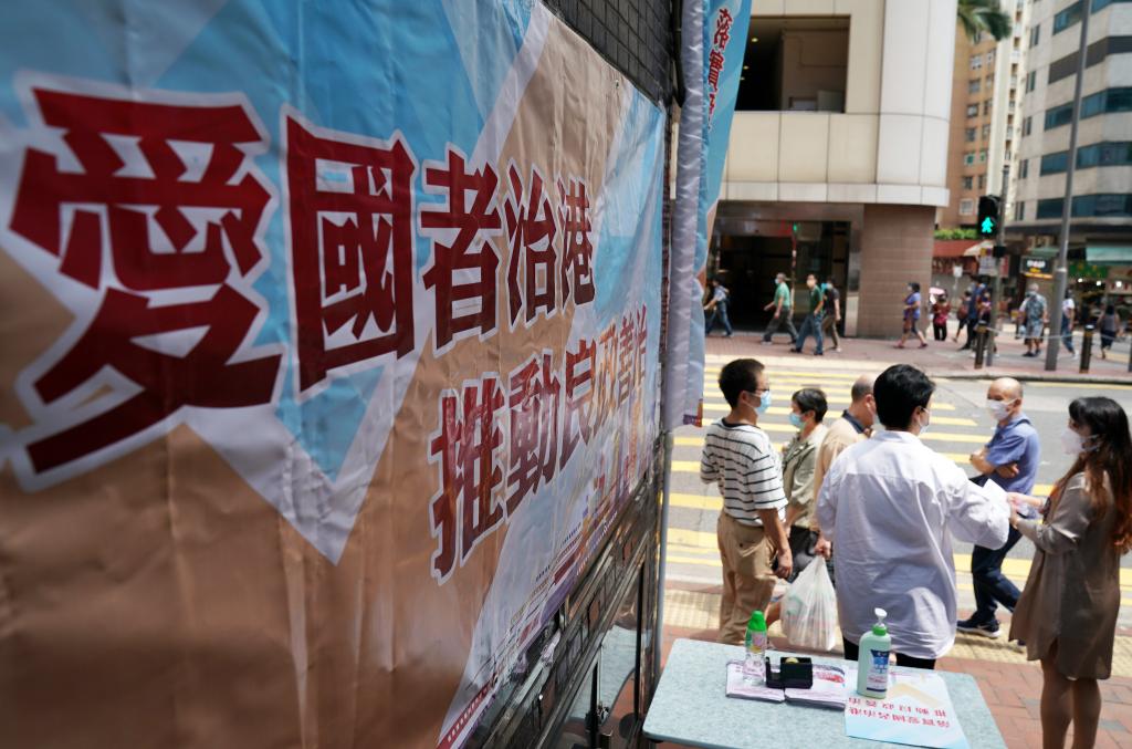 2021年9月21日,香港街头举办“落实爱国者治港 推动良政善治”街站宣传活动。 新华社记者 李钢 摄