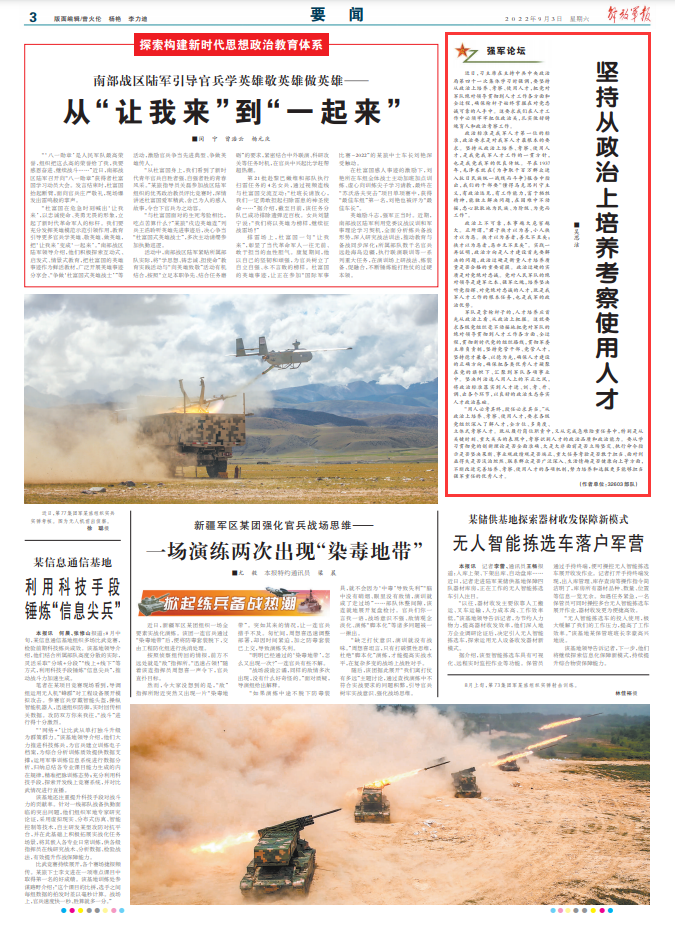 近日,习主席在主持中共中央政治局第四十一次集体学习时强调,要坚持从政治上培养、考察、使用人才,把党对军队绝对领导贯彻到人才工作各方面和全过程,确保枪杆子始终掌握在对党忠诚可靠的人手中。这要求我们在人才工作中必须牢牢把住政治关,扎实做好铸魂育人和政治考察工作。