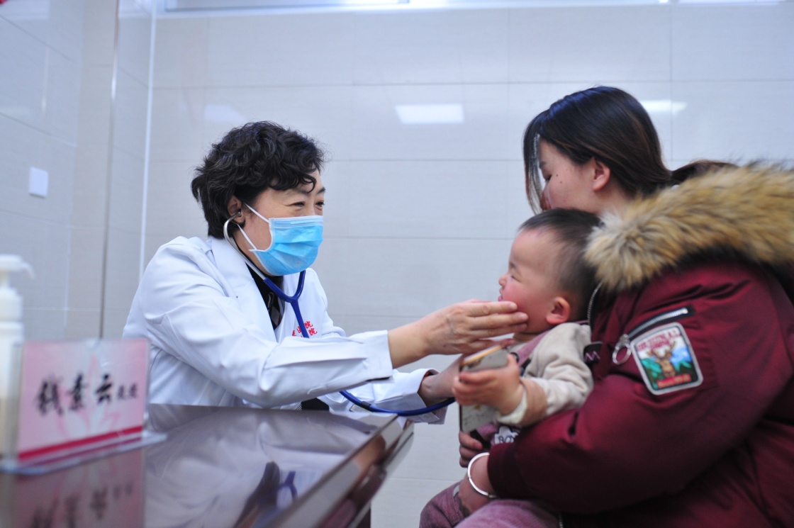 钱素云在陕西省榆林市儿童医院参与义诊活动(2019年1月摄)。新华社发