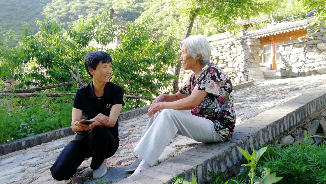 刘桂珍(左)和村民聊家常(2022年7月6日摄)。新华社发