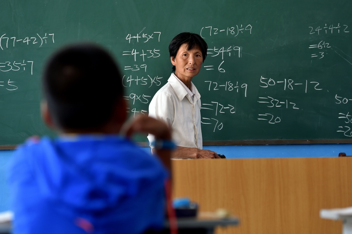 刘桂珍在山西省代县王家会小学上数学课(资料照片)。新华社记者 詹彦 摄