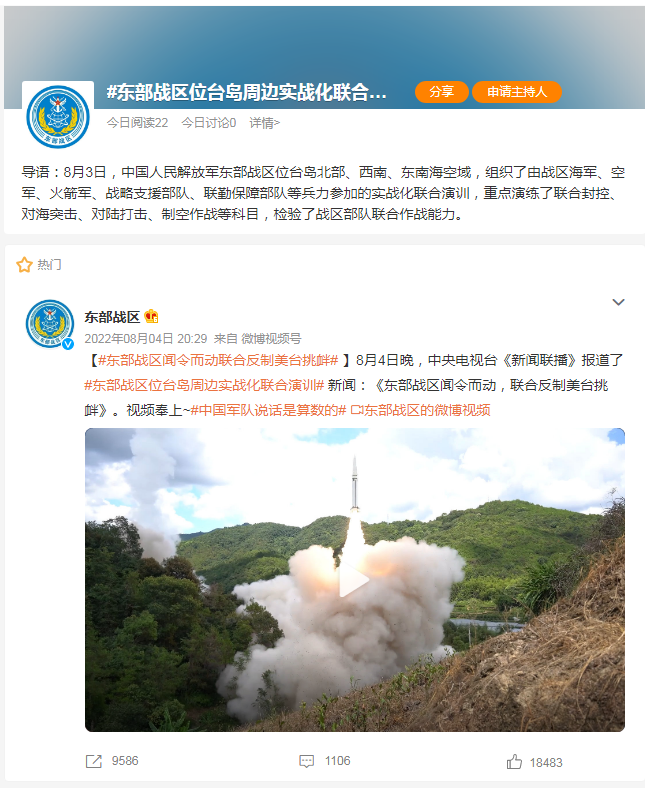 东部战区#继续位台岛周边海空域进行实战化联合演训,重点组织联合反潜和对海突击行动
