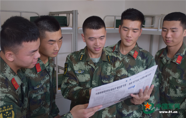 武警北京总队十六支队掀起学习领会习主席重要讲话精神热潮。 图为官兵通过读报学习讲话精神。姜楠。摄