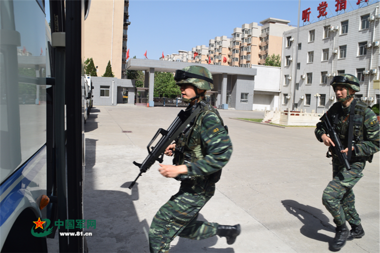 武警北京总队十六支队掀起学习领会习主席重要讲话精神热潮。图为特警排紧急拉动,锤炼应急反应能力。