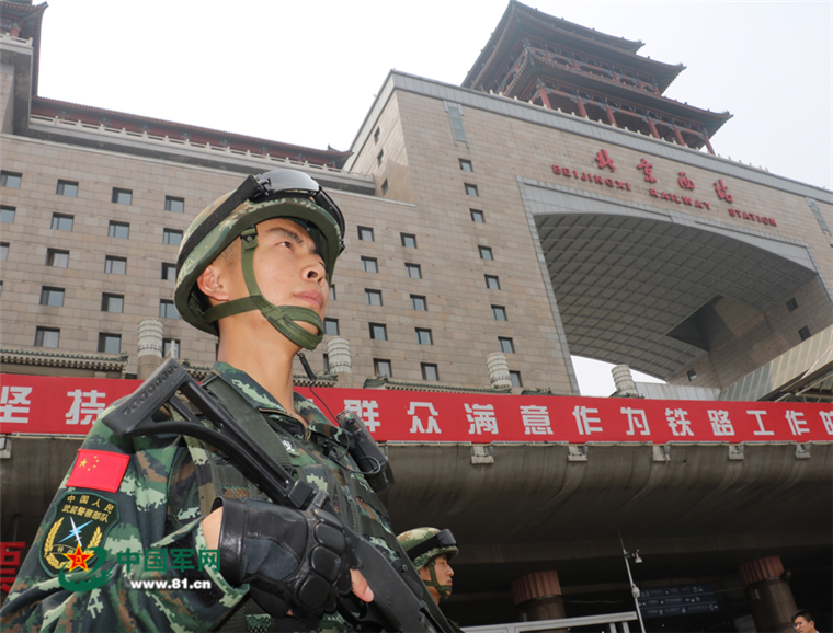 武警北京总队十六支队掀起学习领会习主席重要讲话精神热潮。图为特勤排官兵履行使命,维护首都和谐安宁。