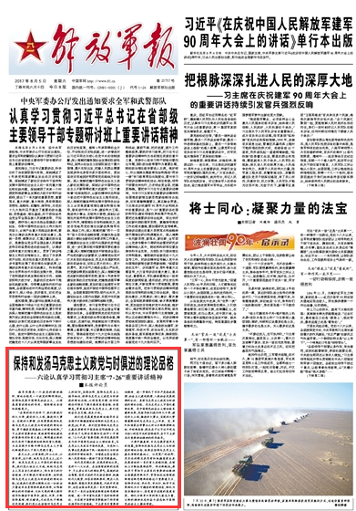 只要手握真理,目光总能穿透历史的迷雾。坚持和发扬马克思主义与时俱进的理论品格,就要在坚持马克思主义基本原理的基础上,以更宽广的视野、更长远的眼光来思考和把握国家未来发展面临的一系列重大战略问题,在理论上不断拓展新视野、作出新概括。要把学习贯彻习主席系列重要讲话精神全面提高到新水平,紧紧抓住治国理政新理念新思想新战略这个重要着力点,坚持学而信、学而思、学而行,把学习成果转化为不可撼动的理想信念,转化为坚决维护核心、坚定看齐追随的高度自觉,转化为强军兴军的强大意志力量,以新的精神状态和奋斗姿态把中国特色社会主义推向前进。