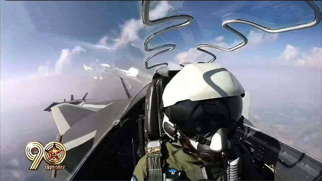 参加庆祝建军90周年阅兵式的歼-20战机座舱。(电视截图)
