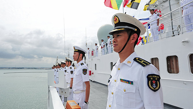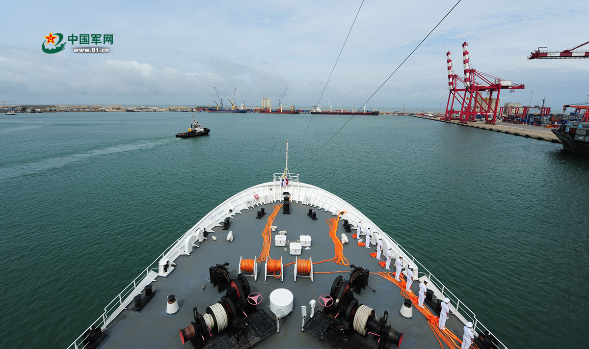 当地时间10月10日,中国海军和平方舟医院船缓缓驶进刚果(布)黑角港。中国军网特约记者江山 摄