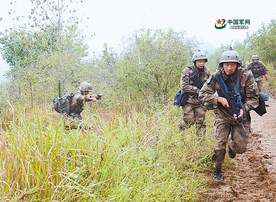深秋时节,“中部砺剑-2017·确山”基地化训练实兵对抗的硝烟刚刚散去,征衣未解的陆军第82集团军某旅官兵立即投入复盘演练,以战斗的姿态迎接盛会召开。 杨磊 摄