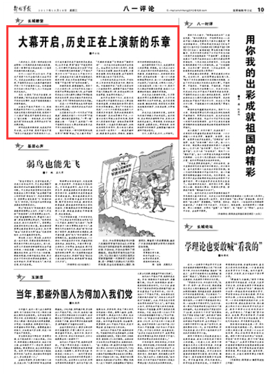 我们关注党的十九大,是因为这次盛会将为中国特色社会主义事业绘就新的蓝图,对推进国防和军队现代化作出战略擘画。身处“千年未有之变局”,一个人口比现有发达国家人口总数还多的国家,怎样加速推进现代化新征程?走向世界舞台中央,一个曾以古老文明傲立世界的民族,怎样对人类有新的贡献?面临世界新军事革命竞争,一支基本实现机械化、加快迈向信息化的军队,怎么把自己建设成为世界一流军队?……越是关键时刻,越需要用全局性、战略性、前瞻性的行动纲领来把舵定向。