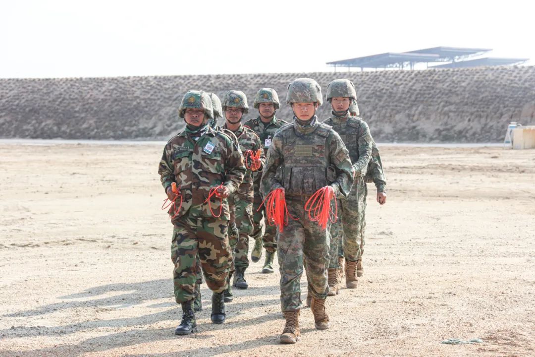 The participating troops conducted the blasting exercise on simulative minefields with various types of explosives from the two countries, mainly through ignition tube-induced detonation and electric initiating.