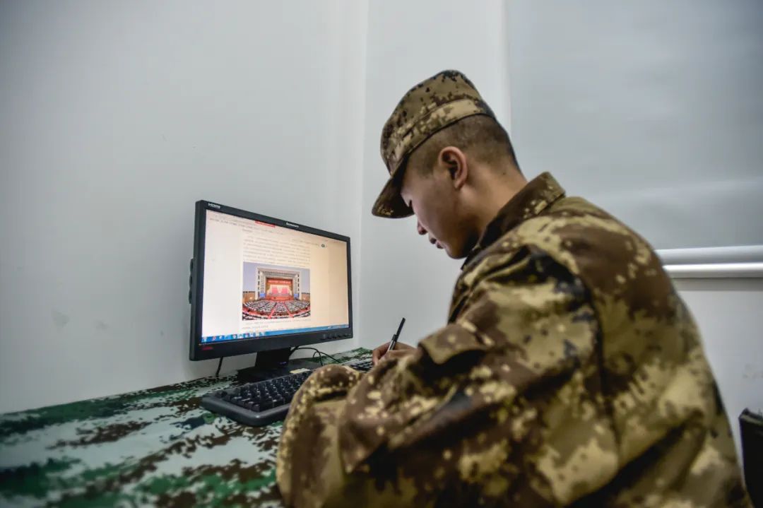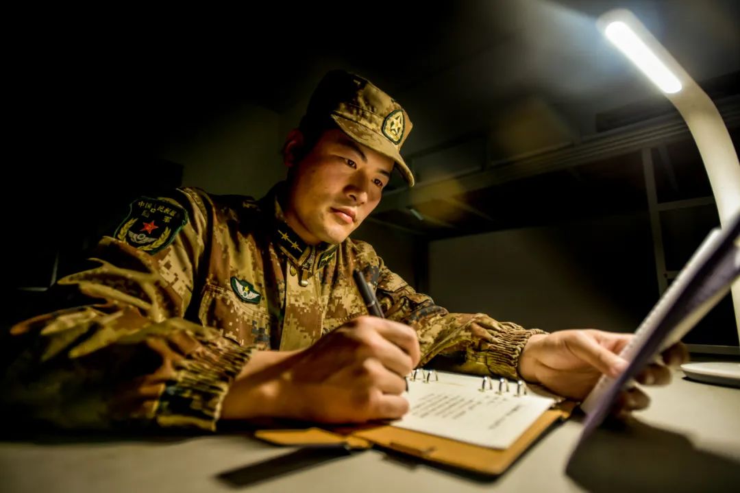夜深如墨,学习室灯光闪烁,正在合成一营蹲点的该旅政治工作部干事凌锦顾不上休息,认真细致研读党的二十大报告,及时梳理学习心得体会,以便更好地指导基层官兵学习领会党的二十大精神。