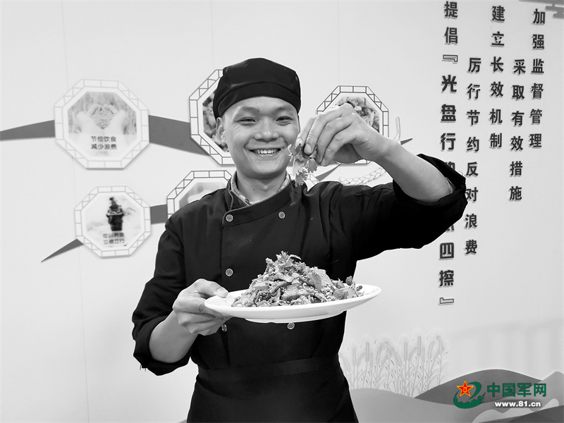 节日期间坚守战位的海岛炊事兵林业钦。官兵提供