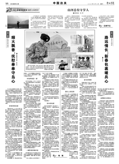 今年春节,许多边防战友选择在战位上过年。牺牲小家的团圆,成全大家的幸福安康;把对家的眷恋、亲人的牵挂,默默放在心底,悄悄打进行囊珍藏——这是军人职责使命所系,也是军人的价值所在。