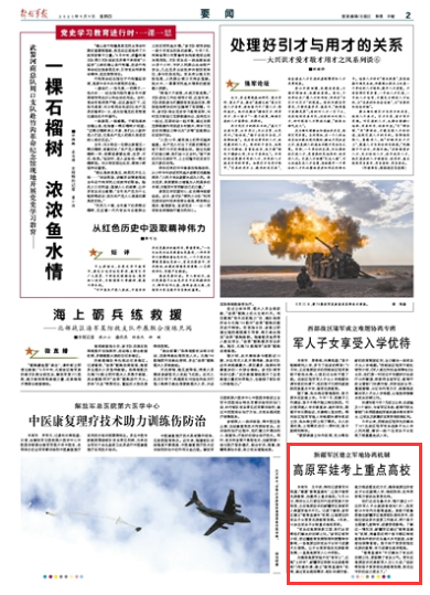 为确保高原军娃不但“有学上”,还能“上好学”,新疆军区积极与各级教育部门沟通协调,建立“教育直通车”机制,通过官兵提报需求、部队协调对接、地方推进落实的方式,确保高原边防官兵子女在就便入学、择校投档、定向录取等方面依法享受优待。