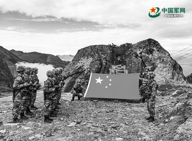 上图:西藏山南军分区某边防连组织开展“五星红旗下话初心”活动,激励官兵卫国戍边,再立新功。王旗红 摄