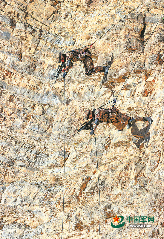数小时后,部队到达预定地域,官兵们勇斗严寒,轮番展开多种极限体能训练:协同推拉车训练,官兵喊声震天,推拉着重达数吨的猛士车向前移动;翻轮胎训练,100多公斤重的轮胎在雪地里翻腾;扛圆木训练,大家扛着沉重的圆木,咬紧牙关在海拔4500多米的高原上奔跑……最后,训练迎来重头戏——崖壁攀登滑降。官兵们借助绳索在近乎垂直的峭壁上攀爬和滑降,既要克服高原缺氧带来的不利影响,还要时刻应对山顶滑落的碎石。