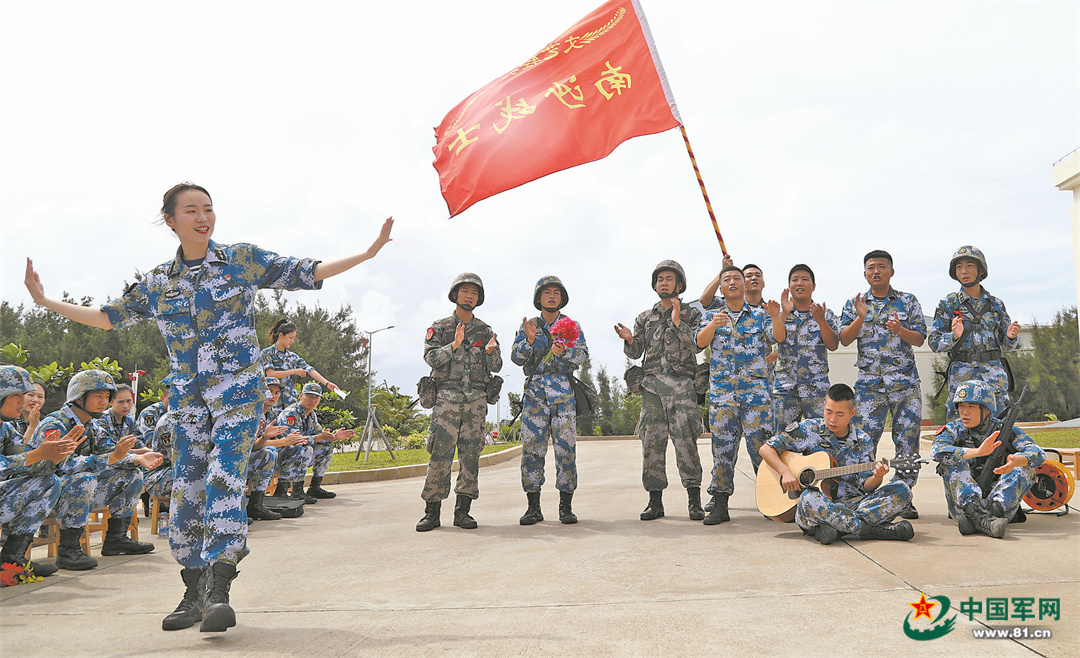 赤瓜礁上,队员们唱起为纪念“3·14”海战创作的歌曲《枪声响起的地方》,艺术再现先辈们守卫国土、耕波犁浪的光荣岁月,让守礁官兵备受鼓舞。