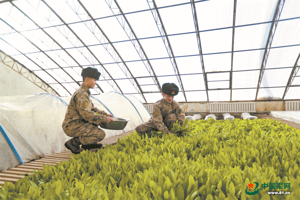 “室外温度低至-29℃,我们温室大棚里依然温暖如春。”王学鸿说,今年春节,他们自产的新鲜蔬菜足以保障全连官兵过节。