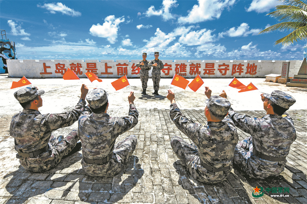 “枕戈待旦戍南沙,豪情壮志捍主权”“持长缨雄视四方,怀忠心为国戍礁”……初夏时节,南沙主权碑旁,守礁官兵竞相参与正在进行的礁联大赛。最终,三级军士长孟小辉写下的“驻南沙战狂风恶浪铸男儿钢筋铁骨,守国门御强敌贼寇显卫士赤胆忠心”摘得桂冠。