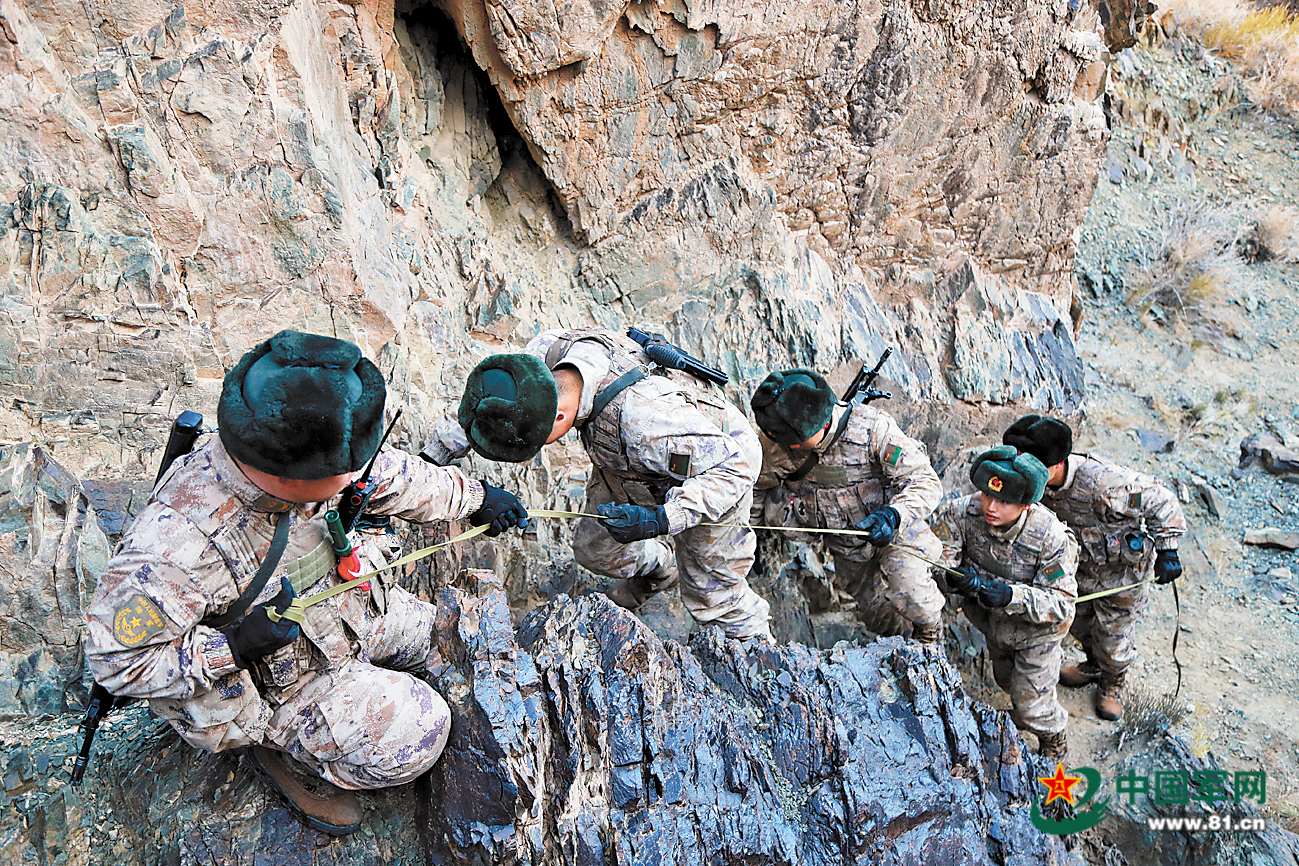 越荒山、穿戈壁……官兵们经过大半天的艰苦跋涉,顺利抵达此次巡逻的目的地。