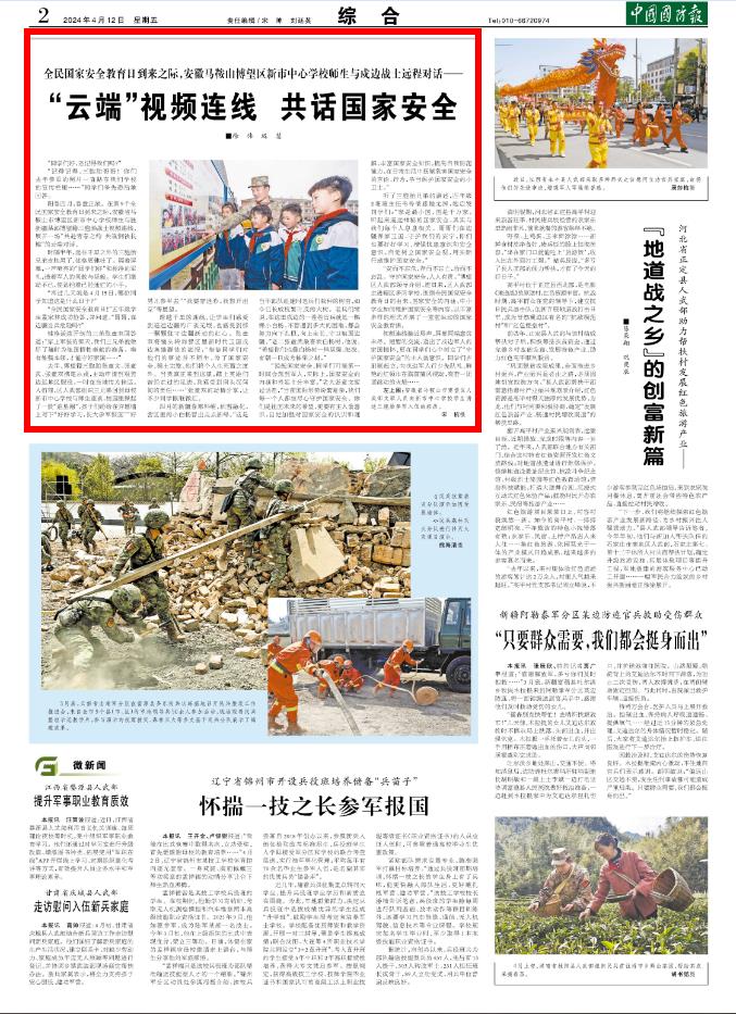 阳春四月,春意正浓。在第9个全民国家安全教育日到来之际,安徽省马鞍山市博望区新市中心学校师生与驻新疆某部博望籍三胞胎战士视频连线,展开一场“共赴青春之约 共筑钢铁长城”的云端对话。