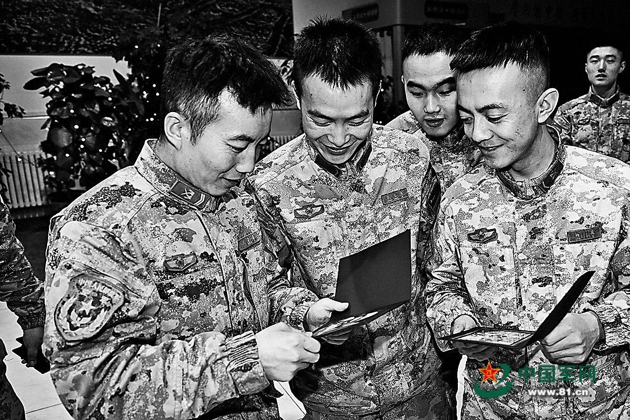战士们围坐成圈,有人大声朗读,有人静静聆听。读到最后,没有人再说话,只有窗外的风声在呼啸。二级上士傅海波小心抚平信纸上的折痕,轻声说:“我女儿也上三年级,看到这信,就像听见她在跟我说话。”