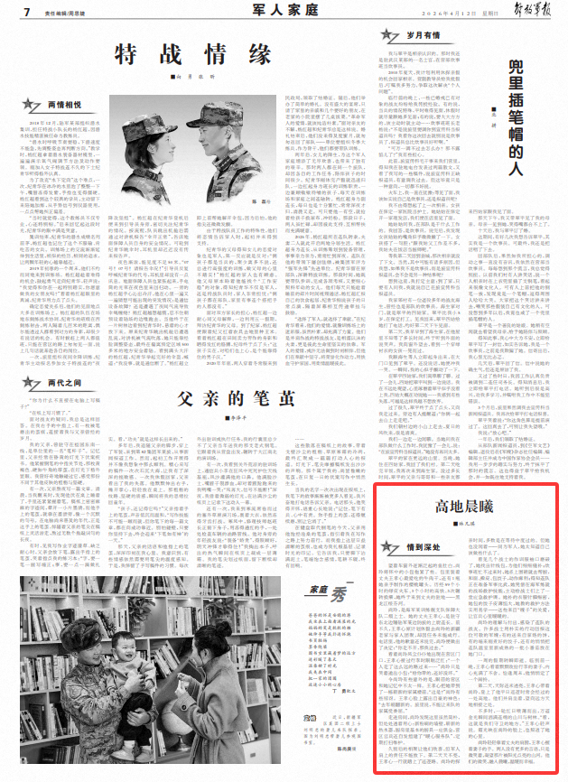 看见几个战士的作训服袖口磨破了,她找出针线包,为他们细细缝补;炊事班忙不过来时,她系上围裙就去帮厨,和面、擀皮、包饺子,动作麻利;得知连队正在准备军事比武,她凭借在海军练就的战场救护技能,主动给战士们上了一堂应急救护课。她补的衣服针脚细密,她包的饺子皮薄馅大,她教的救护方法实用易学——这些来自“嫂子”的关爱,让官兵心里暖暖的。