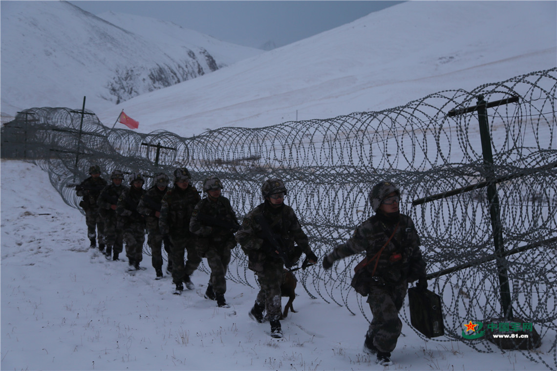 官兵在边境线上巡逻。