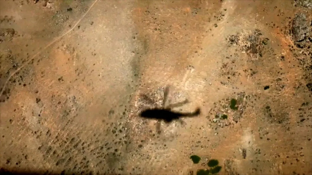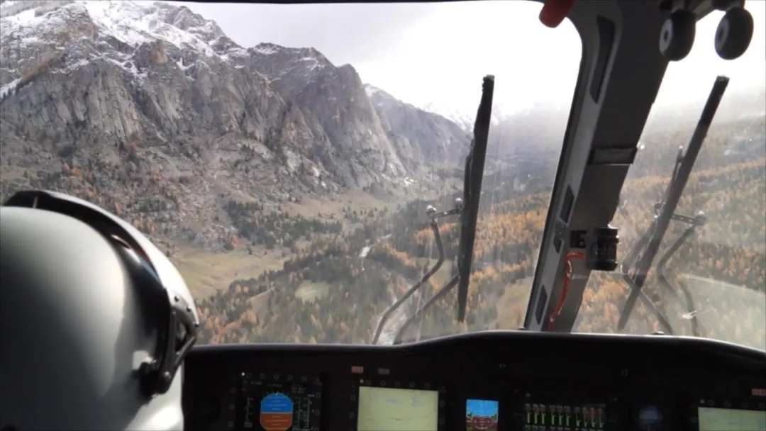 直升机再次起飞,穿行在高山峡谷中,山谷最窄的地方仅能满足一架直升机通过,机组成员密切协同,确保飞行安全。