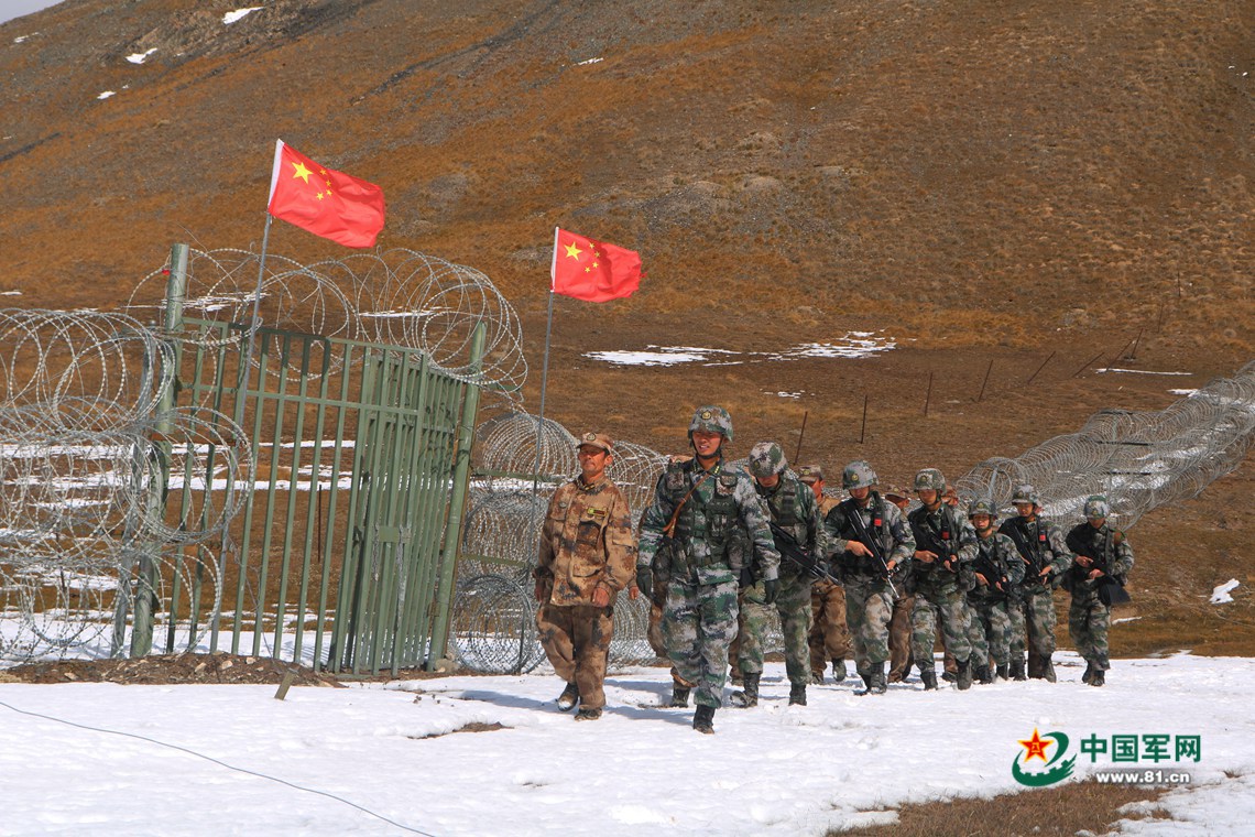 巡逻官兵查看边防设施。