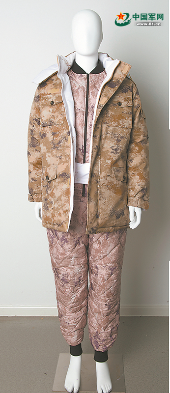 据有关负责人介绍,新研发的防寒被装共5个品种,在增强防护功能的同时,更轻更便捷。其中,新型单兵睡袋融合17式单兵帐篷、睡袋、睡垫3种产品功能,利用工业结构设计与材料开发技术实现一体化突破,重量减轻、体积缩小,较之前产品总体积减少50%,可在海拔5000米以上、气温-40℃以下高原高寒环境使用。新型羽绒作训大衣、羽绒棉衣裤,面料采用高强度锦纶纤维,贴合热塑弹性防水透湿薄膜,触感柔软、耐磨防勾丝;其絮片结构设计,可有效提高保暖性。新型防寒靴,采用耐低温发泡中底等新材料,总重量较07式防寒靴大幅减轻,在鞋头、后跟与双侧脚弓位置加入防磨、防踢片,更好保护脚趾、脚跟、脚踝,延长使用寿命。新型多用途雪地伪装服,采用锦纶加抗静电丝,新型涂覆技术与雪地迷彩结合,有效提高可见光与近红外隐蔽性,充分考虑携行装具与服装多层穿搭情况,内部预留活动余量;伪装服展开后可作为篷布,与单兵睡袋搭配使用,弥补睡袋伪装短板。