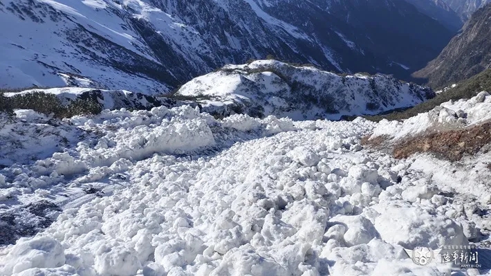 ▲雪崩静止后,近3米深的冲沟被填平