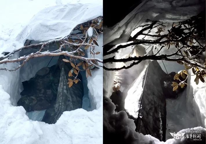 ▲巡逻路上,官兵的“雪窝”