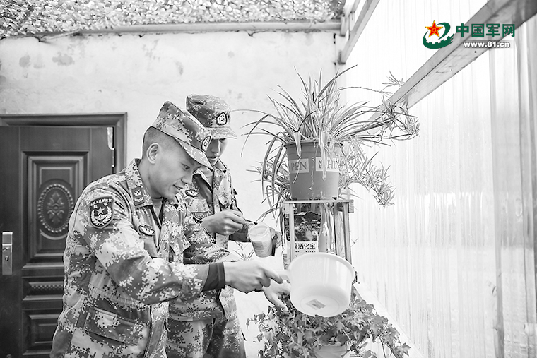 受汪泽昆影响,张浩斌也加入“护花使者”行列。哨所土壤不肥沃,他便借下山之机,蚂蚁搬家似的从连队背回土壤。入冬前的一场大雪,让张浩斌惊出一身冷汗。风雪狂舞,眼看积雪越来越厚,就要压塌棚顶,张浩斌见状连忙冲进阳光棚,将盆栽一一搬进宿舍。
