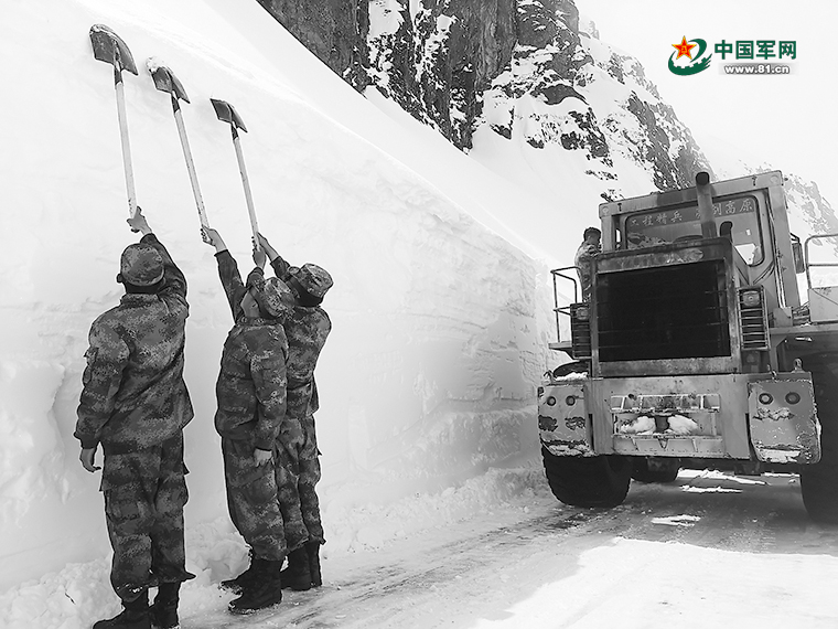 风雪过后,积雪被战士们砌成雪墙。