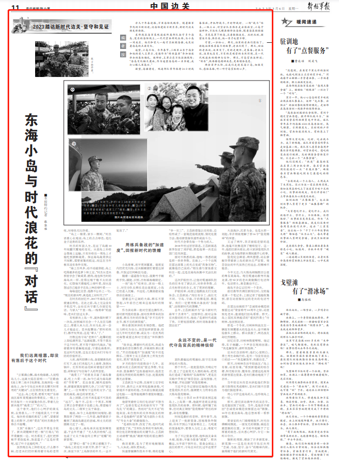 “云雾满山飘,海水绕海礁,人说咱岛儿小,远离大陆在前哨……”在歌曲《战士第二故乡》发源地、东海深处一座海岛上,如今守岛官兵和亲友聊天时常用的“关键词”,正在悄然发生着变化。