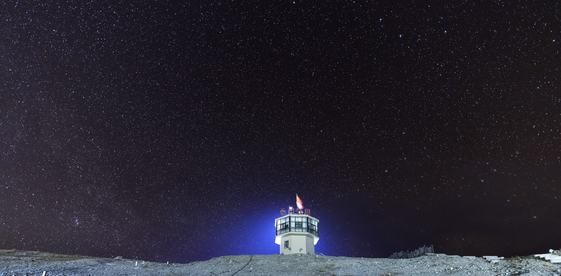 这是4月12日深夜拍摄的红其拉甫哨所。哨所与满天繁星相互辉映。新华社记者 费茂华 摄